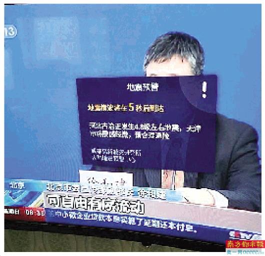 在地震发生前,电视里弹出了地震预警信息。