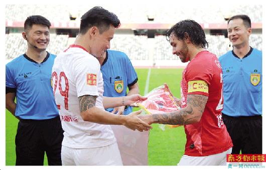 5月16日,深足与恒大进行热身赛时,郜林和高拉特作为双方队长出场。但昨天,高拉特被宣布租借至华夏幸福。 深足官方供图