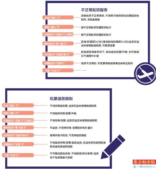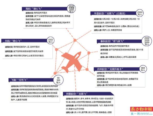 南都记者评测发现,较之东航最早推出的产品,之后跟进的各大航司在东航“随心飞”基础上大都进行了迭代,比如适用范围、适用时间进一步放宽。