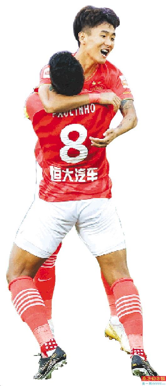 韦世豪与保利尼奥庆祝。 视觉中国图