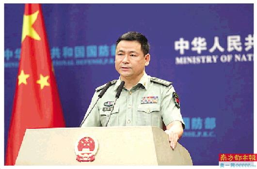7月30日,国防部新闻发言人任国强在记者会上答问。 国防部网图片