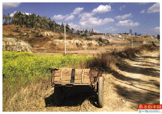 曾祥斌2011年第一次去到南盘江旁的现场,发现低矮的砖墙渗出淡黄色和白色相间的析出物,从江边沿着斜坡一直堆存到坡顶。与堆场相邻的是一片稻田,灌溉用水的颜色是“令人忧郁的淡黄”。