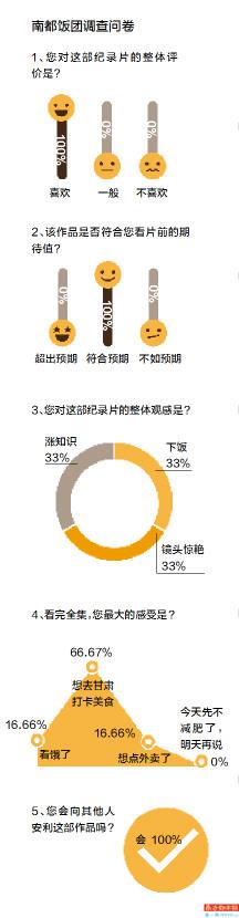 这一点也在看片过程中,受到了小团子们的认可,33%的小团子表示看完“涨姿势”,67%的小团子则表示最大的感受是“想去甘肃打卡美食”。对于本季的整体品质,参加看片的小团子们都给出了“喜欢”的高度好评,并表示符合自己对这一系列纪录片的预期,且愿意向周围的人自发安利此片,更有人向制作方提出了“节目组还招人吗”的灵魂拷问。