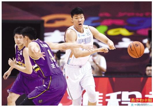 范子铭(右)在上赛季的CBA比赛中。新赛季他将代表北京男篮出战。 新华社发