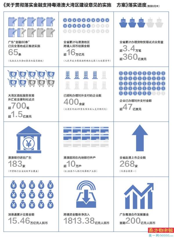 2020年5月14日,人民银行等四部门联合印发《关于金融支持粤港澳大湾区建设的意见》。为全面推动政策落地见效,广东出台了《关于贯彻落实金融支持粤港澳大湾区建设意见的实施方案》(简称金融80条),提出五大任务80条具体落实措施。