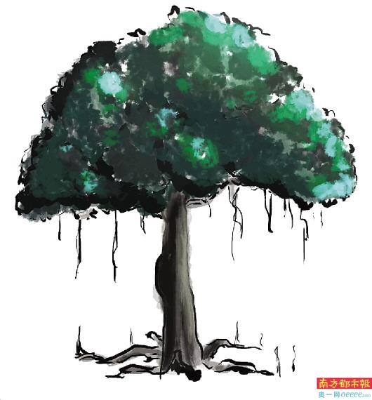 后来,每当我看见天上圆圆的月亮时,眼前总会闪过大榕树的身影。大榕树背后的故事,像一条长长的丝带,将我与故乡缠绕在一起,难以忘怀。