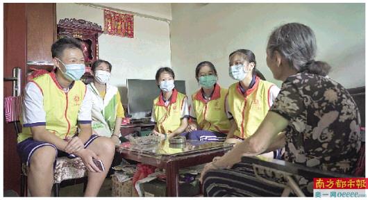 4名中大附中的学生在老师和社工的带领下,来到年过六旬的容姨家中探访慰问。