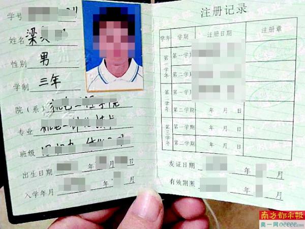 梁同学的学生证。