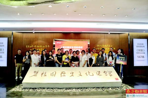 历经一小时的车程后,来自广佛两地的团友们一起站在了摇曳着绿色“瀑布”的网红建筑——碧桂园总部大楼门口。与大楼生态环保主题相呼应的主入口,是一条由156种喜阴植物和多种仿生植物构筑成的“梦想走廊”。还没来得及生发“梦想”,团友们就如同穿越般,瞬间走进了碧桂园的“历史时空”。