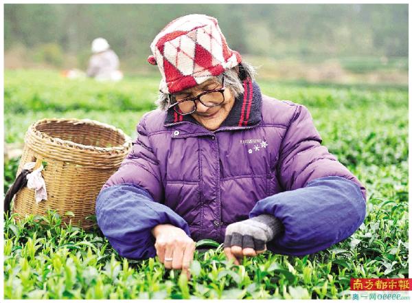 广西昭平南山茶园的采茶人。当地有“长寿之乡”的美称。