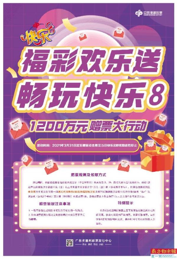 第二波赠票来袭!广东福彩快乐8游戏1200万元赠票今启动
