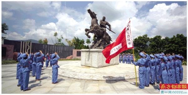 惠州市惠阳叶挺红军小学的学生在叶挺将军纪念园叶挺挥剑驰骋疆场的铜像前举办主题活动。 叶挺纪念馆供图