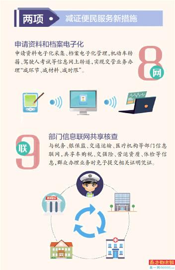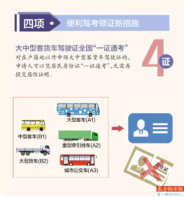 上述规章新推出9项便民利企措施,涉及私家车上牌免检,大中型客货车驾驶证全国“一证通考”等,同时对驾驶人管理采取宽严相济原则,严格驾驶人管理并优化考试程序,再次释放重大利好。