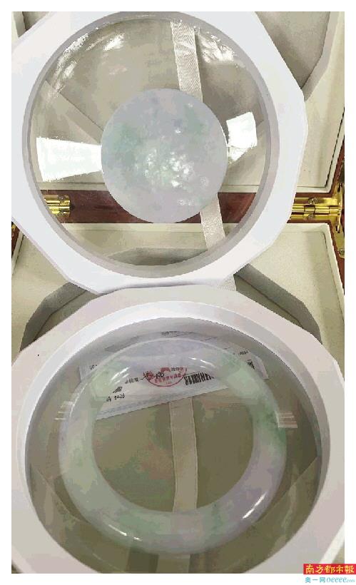 ↑金女士通过小红书等添加商家微信后,看中一款手镯,经国家珠宝玉石质量监督检验中心鉴定为“半透明”级,属于国标“糯种翡翠”。 受访者供图