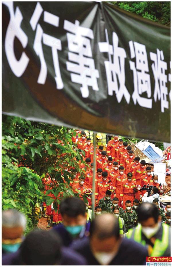 3月27日下午,“3·21”东航MU5735航空器飞行事故遇难者集体哀悼活动在事发地搜救现场举行,对遇难者表示哀悼。新华社发