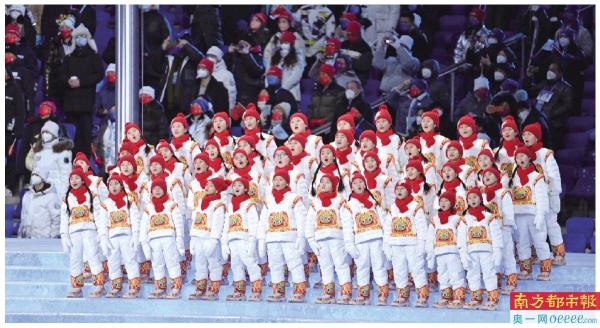 北京冬奥会开幕式上,马兰花合唱团的孩子们用希腊语献唱。 新华社发