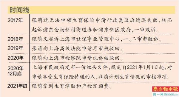 2017年她就无法申领生育保险申请行政复议后遭遇失败,转而起诉浦东金杨新村街道办和浦东新区政府,一审败诉;2018年又起诉上海市社保事业管理中心,一、二审都败诉。2019年她向上海高级法院申请再审被驳回,2020年向上海市检察院申请抗诉被驳回。张萌几乎把所有可行的法律途径都试了一遍。