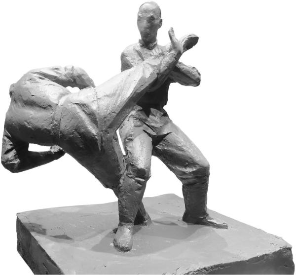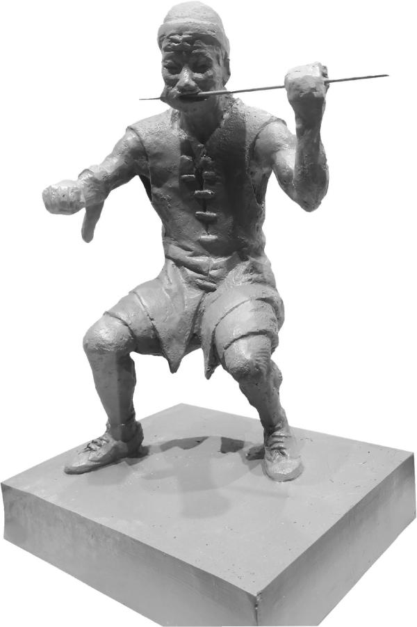 《穿令》是一件全身等比例缩小的泥塑作品,人物呈半蹲状,手执实心、尾部呈针状的令箭,由一边脸颊穿过至另一边脸颊且面色如常,观者仿佛身临现场般获得惊险而又神秘的体会。除此以外,馆内还有《洪拳》等巧夺天工的泥塑作品,让人应接不暇。