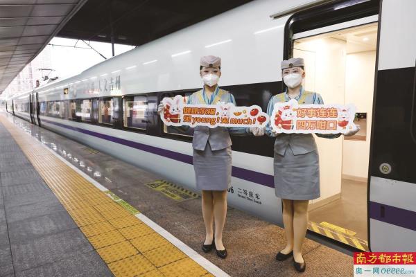 据广铁集团客运部总工程师彭翔介绍,广九直通高铁跨广深城际、赣深高铁和广深港高铁三线运行,全程运行约177公里,途经广州东、东莞、东莞南、深圳北、福田、香港西九龙等车站。广九直通高铁开行后,广州东到香港西九龙全程最快运行时间1小时37分,较原有广九直通车省时约23分钟。