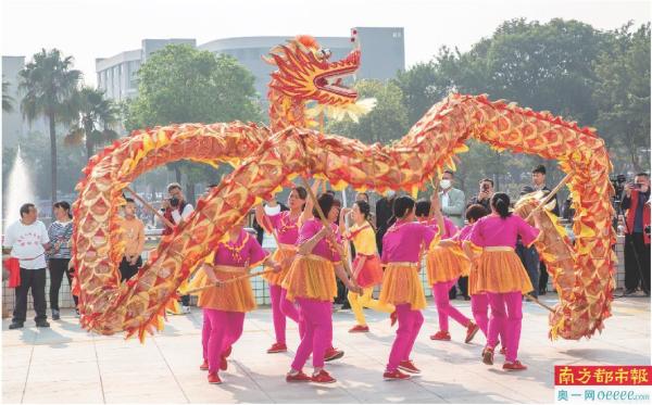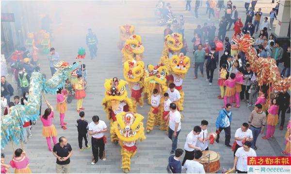 具有农耕民俗元素的舞龙醒狮表演。 南都拍客 聂新建 摄
