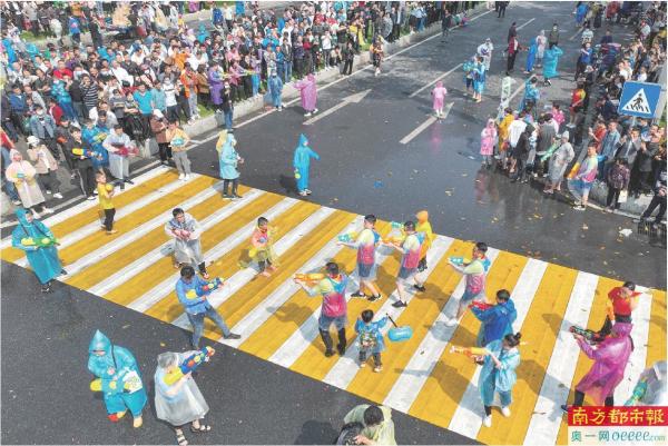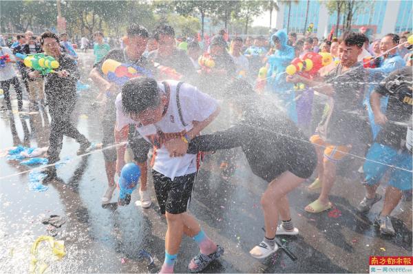 今年“卖身节”继续做大做强泼水祈福、美食街、市集等传统项目,增加了“淘”彩头民俗创意活动、亲子春耕体验等项目,让更多的年轻群体参与进来。其中,最受欢迎的“水战”现场数万人集体狂欢,追逐战、反击战、潜伏战……大家拿着水枪,你追我赶,疯狂地泼洒“吉祥之水”,现场众人无不“湿身”。“简直太好玩了。”市民谢先生兴奋地说,“广东人以水为财,希望在东坑‘湿身’后,能带回去一年好运气!”
