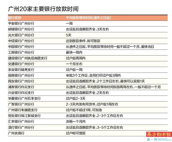 但有部分银行等待时间相对较长。如交通银行广州分行方面:“约为1个月。”浦发银行广州白云支行一位客户经理告诉记者:“从递件之日起,平均放款等待时间加急的情况下为两周,一般不超过1个月。”