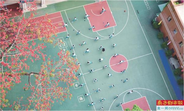 3月16日,广州市第二中学初中部,学生在操场上做运动。 南都拍客 苏升 摄