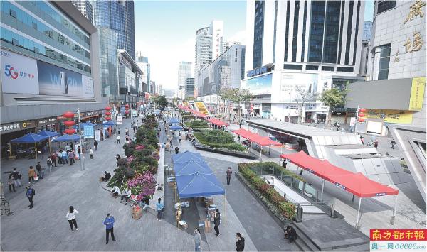 在深圳华强北的步行街上,商户、客户和物流人员在室外忙碌。