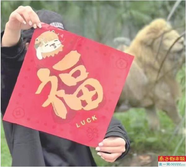 今年过年,我们还自己出了一套以“阿杭”为主题的春联。因为给动物做丰容需要用到一些材料,像纸箱、藤球以及过年后不再摆放的年桔,有不少物品是市民捐赠的。作为回报,我们就会把这些春联送给捐赠物品的人。