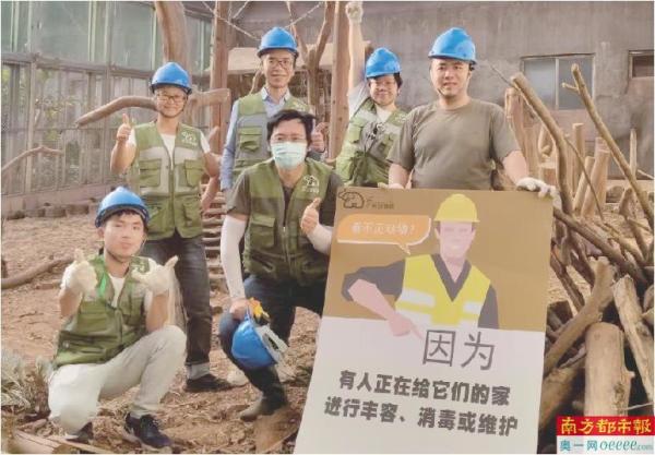 志愿者在广州动物园为动物们打造“一个五星级的家”。后排左二是李博文。
