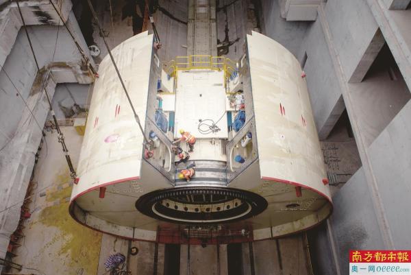 3. 3月20日,盾构机最后一块盾体吊装下井。