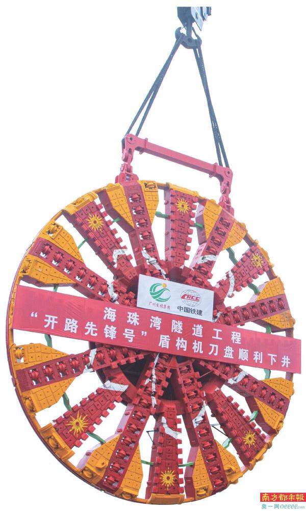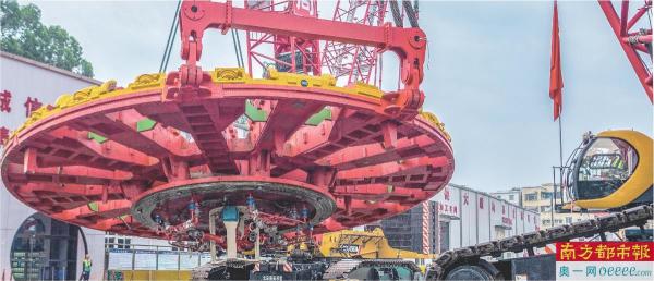 近日,海珠湾隧道工程迎来关键性节点。3月14日,海珠湾隧道工程东线超大直径盾构机“开路先锋号”主驱动顺利完成下井组装,激活“心脏”。3月25日,被称为盾构机“巨牙”的刀盘顺利下井,随着盾构机组装工作圆满完成,即将进入调试阶段,标志着海珠湾隧道工程朝着掘进施工目标又前进了一大步。