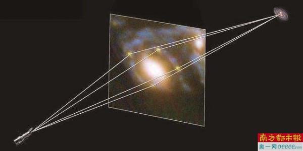 刘超介绍,通过捕捉引力透镜现象,能找到暗物质的蛛丝马迹。引力透镜效应指的是物质(包括暗物质)引发的时空弯曲,导致其背景天体产生的光线发生扭曲,从而像穿过透镜一样发生形变。