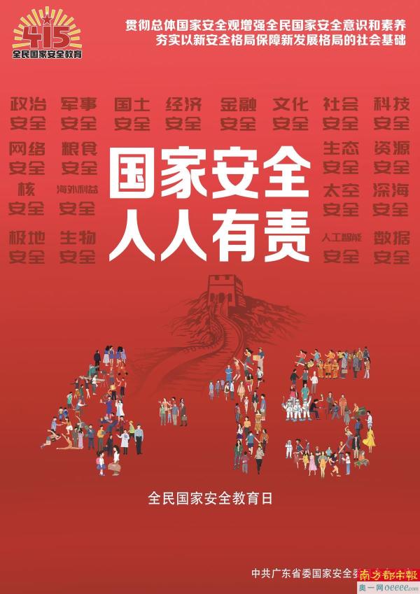 4月15日是第八个全民国家安全教育日,今年的主题为“贯彻总体国家安全观,增强全民国家安全意识和素养,夯实以新安全格局保障新发展格局的社会基础”。连日来,广东各地各有关部门开展了一系列普法宣传活动,持续推动国家安全宣传教育工作广泛深入开展。