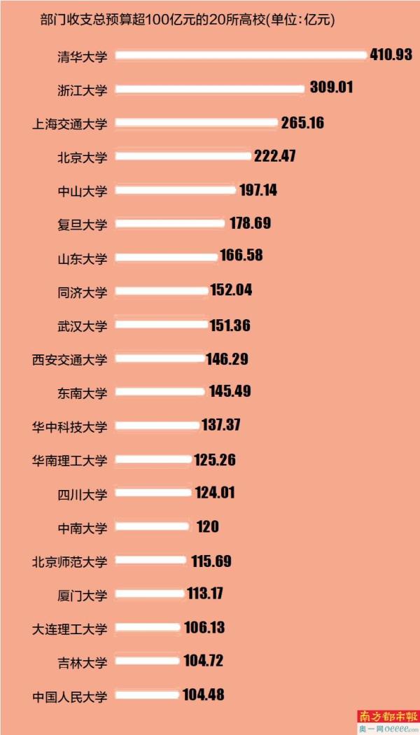 从各所教育部直属高校已公布的数据看,今年有20所高校的部门预算超过百亿元,比去年增加5所。