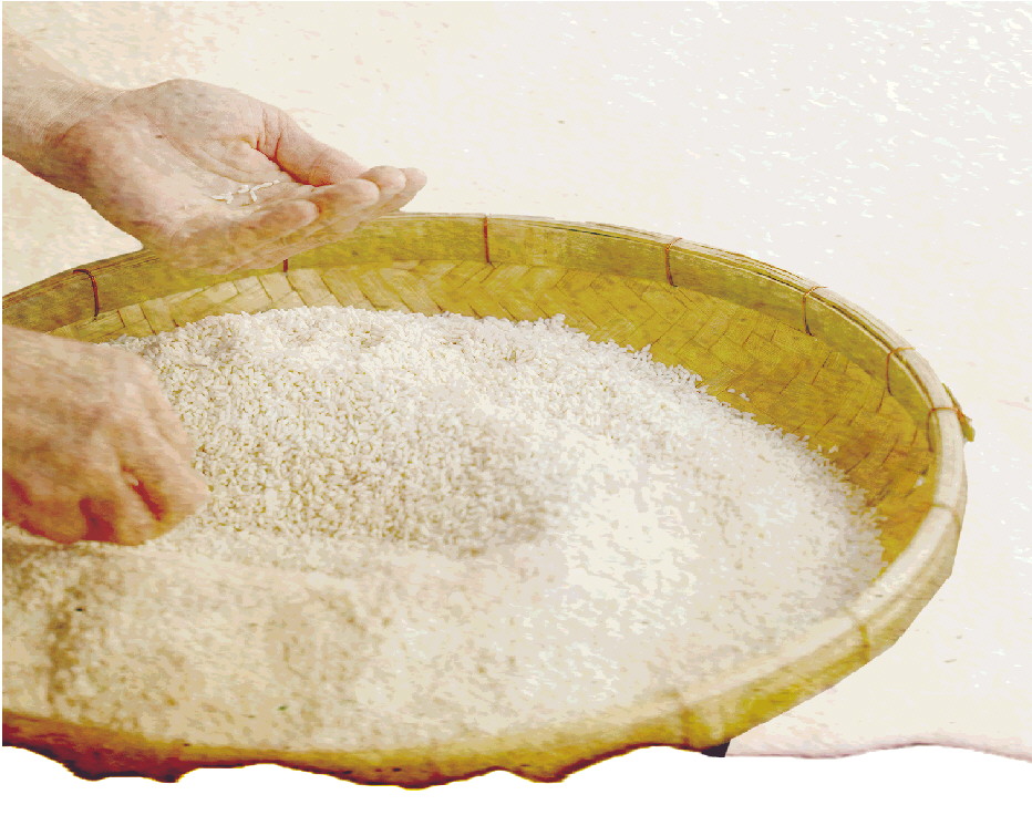 酿造一坛娘酒需要选米、洗米、浸米、蒸米等十余道工艺。图为选米。