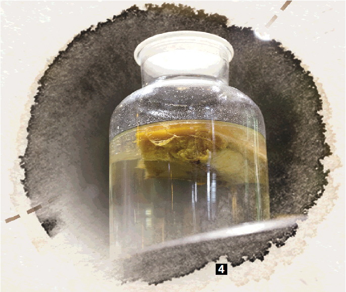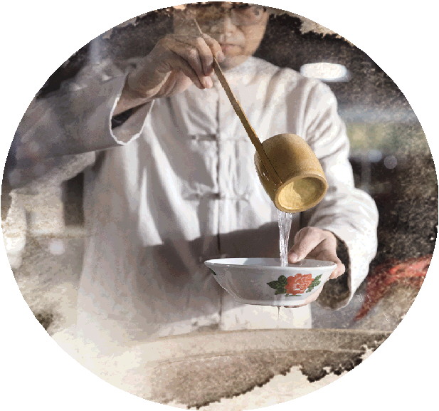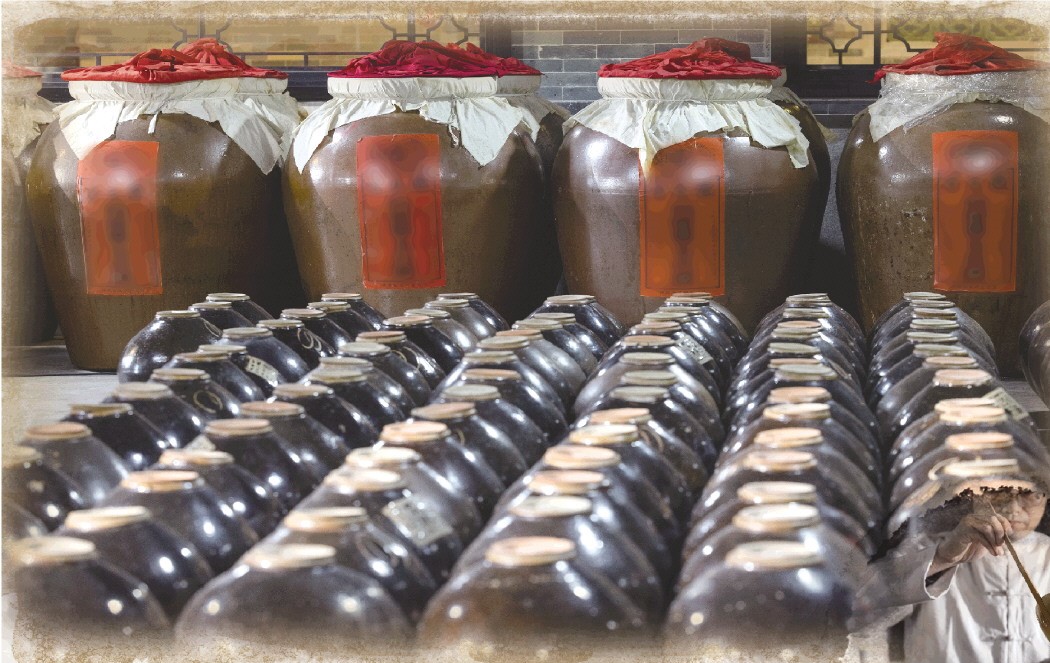 当丰收的谷物遇上泛白的肥肉,伴以蒸煮、发酵、蒸馏、沉淀等工艺,一埕玉洁冰清、豉香独特玉冰烧酒方可酿成。这些肥肉在陶罐中浸润时间长达5年,蓬松的脂肪结构能够吸收米酒中的异味,色泽也从白色变成了金黄色。