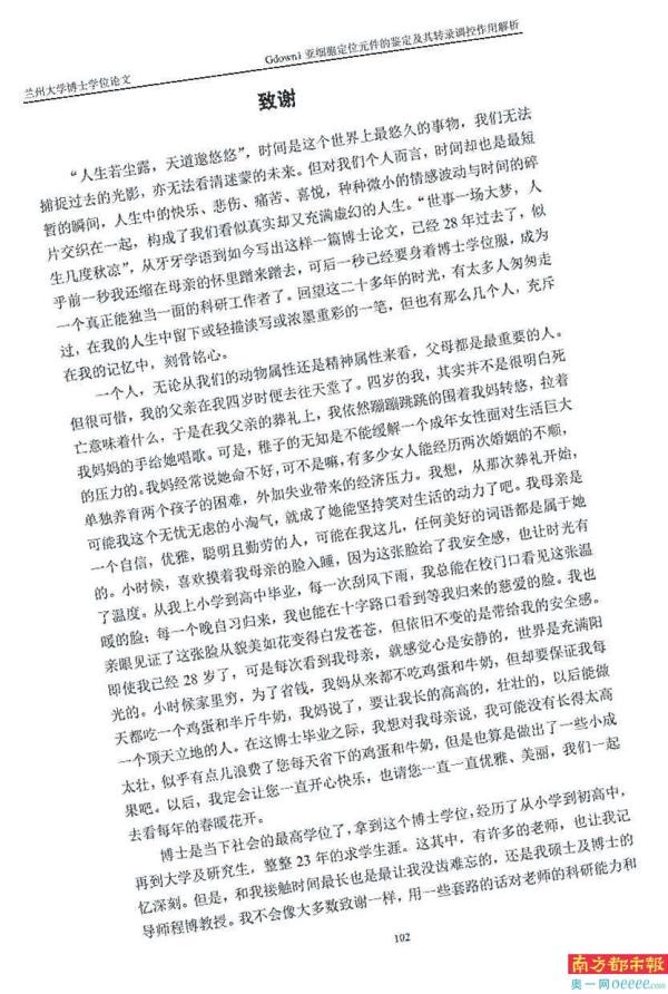 朱占武致谢母亲的博士毕业论文感动了无数人。