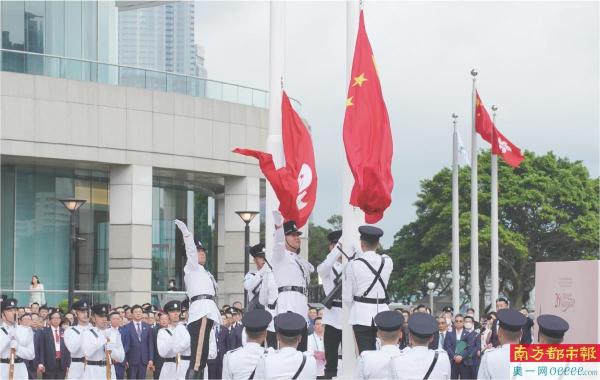 7月1日早上,香港特区政府在金紫荆广场举行升旗仪式,庆祝香港回归祖国26周年。