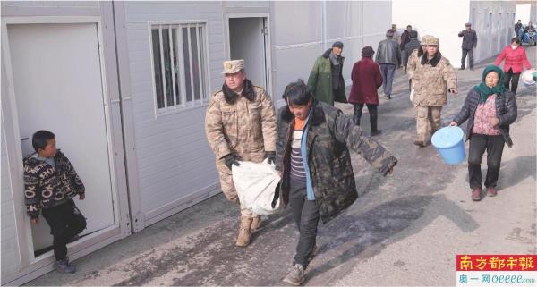 12月23日,在甘肃积石山县石塬镇肖红坪村临时安置点,陆军第76集团军某旅官兵帮助受灾群众入住活动板房。 新华社发
