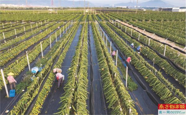 “来到广东的燕窝果还是有点水土不服,需要安装遮阳网、防寒膜,温度太冷太热都不行。”喜见农业发展有限公司总经理、农科专家肖志豪介绍,由于燕窝果生长周期比普通红心火龙果周期长,夏天约90天,冬天130天-150天,且对种植技术要求较高,对病虫害的抵抗力也较弱。通过人工调控产期、灯光催花,让燕窝果在最适宜的时间段成熟。