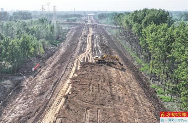 4月24日,工人在河北省涿州市北拒马河涿州段应急防洪治理工程建设工地操作工程机械设备施工。 新华社发