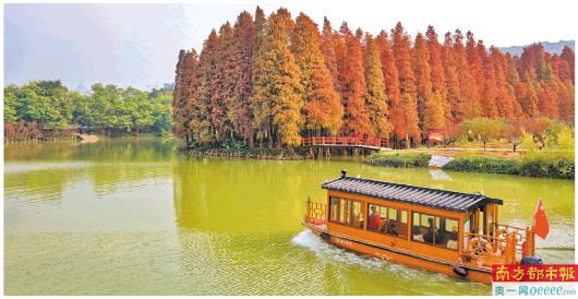 在冬天,七星岩的落羽杉林披上红色的新衣,十分明艳。 李显才 摄