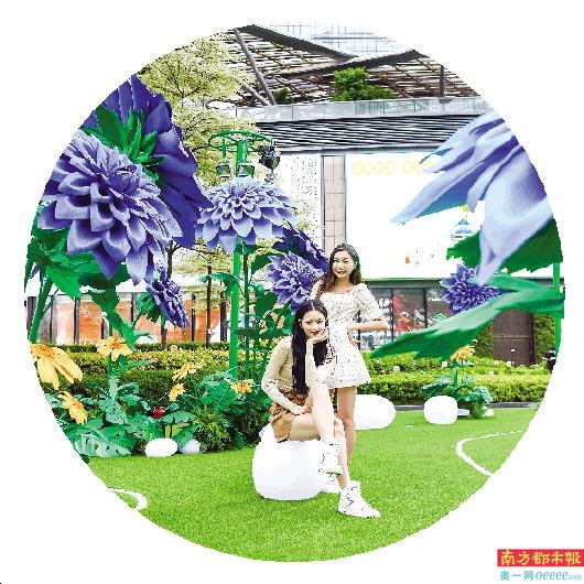 除了写字楼外,天河路商圈的商超同样开始活跃起来。天环首次引进浪漫艺术花卉,打造“花森思”沉浸式手工纸艺花展。据介绍,“花森思”巨型纸艺花展由天环携手国内知名纸艺术设计师黄锐纯手工打造,户外北广场的荧花之森,由象征热情活力的蓝色系天竺牡丹簇拥而成,放大百倍的花束错落有致地“生长”成一片治愈感满满的奇幻森林。入夜后,森林犹如被施了法,散发出神秘微光,紫光花瓣、暖光圆石、荧石栈道,展现一幅五彩斑斓的黑夜森林景观。