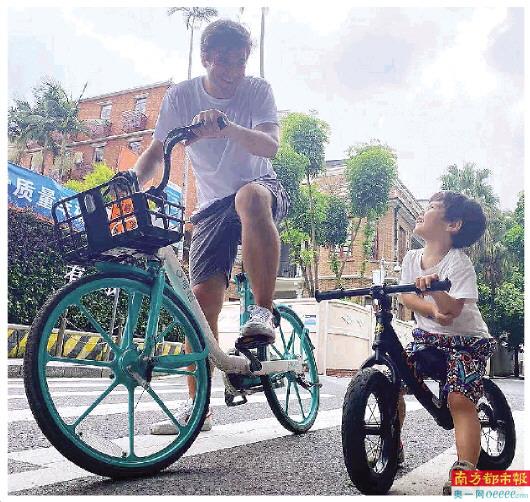 Cycle Canton自行车旅行团创始人欧阳白及其儿子。