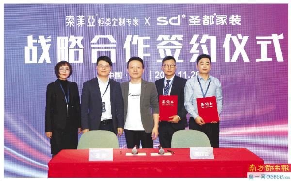 著名定制家居企业索菲亚家居与家装龙头企业圣都家居装饰集团举行战略合作签约仪式。