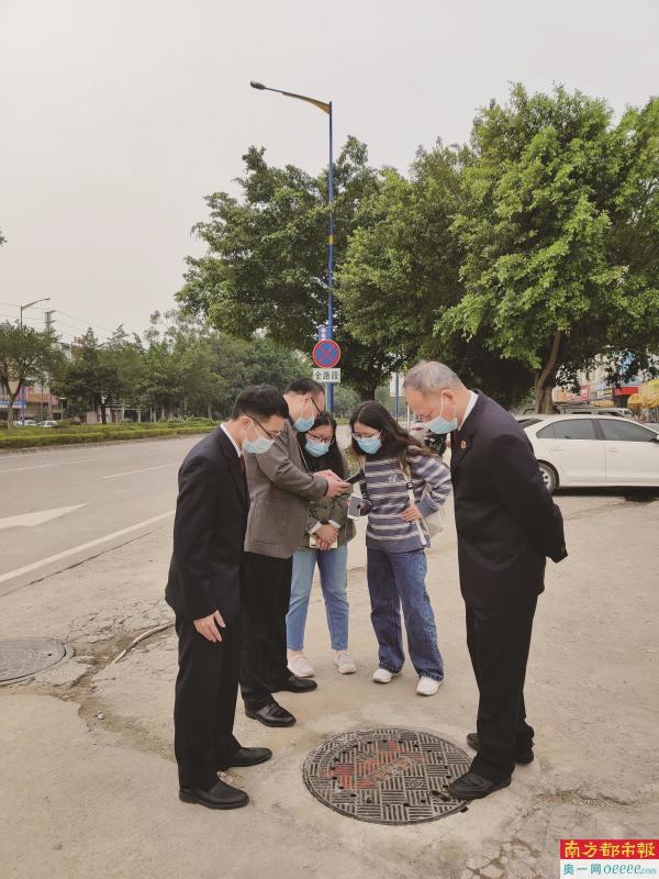 南都记者、花都区公益诉讼检察官、花都区城管局相关负责人察看整改井盖情况。(资料图片)
