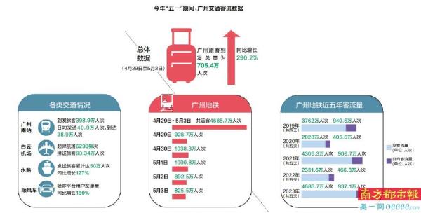 今年“五一”,市民游客出行热情高涨,广州多项交通客流数据刷新记录。这些数据反映了怎样的出行特征?南都记者通过梳理予以呈现。