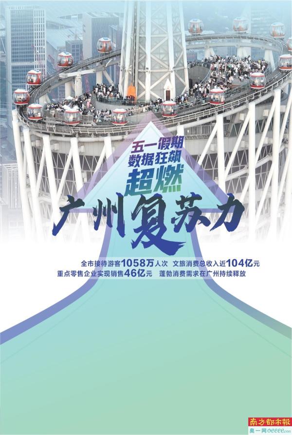其间,你在广州留下了多少足迹?从这组数据或可窥见一二:“五一”假期全市接待市民游客1058万人次,同比增长近54%,文旅消费总收入近104亿元;接待游客量和文旅消费均超过2019年同期水平,创近年新高。随之带动广州内外交通迎来客流高峰,多项交通客流数据刷新纪录,广铁集团管内各站累计发送旅客1956.4万人次,到达旅客1802.6万人次,均创历史新高。买买买大军强势来袭,重点零售企业实现销售46亿元。