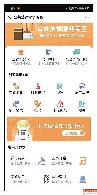 在谭杰平的推动下,“i罗湖”上线了全市首个公共法律服务专区,里面有刑事量刑预测,诉讼、工伤、交通等费用赔偿板块,还有小法疫情知识机器人,为市民提供疫情相关法律问题的解答。